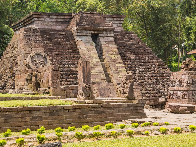 - Empruntez ensuite un sentier forestier pour une randonnée de deux heures entre jungle et cascades, jusqu’au mystérieux temple de Sukuh, surnommé le « temple érotique » de Java pour ses bas-reliefs singuliers.